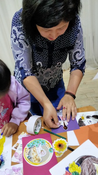 Шеберлік сыныбы барысында балалар табиғи гүлдердің әдемі портреттерін, құттықтау хаттарын үйренді, қиялдарын көрсетіп, эмоцияларын білдіріп, өз жұмыстарының нәтижесінен ләззат алды. Жұмыс жарқын және ерекше. Балалар мольбертте жазғы пейзаждарды салып, шығармашылық атмосфераға риза болды!